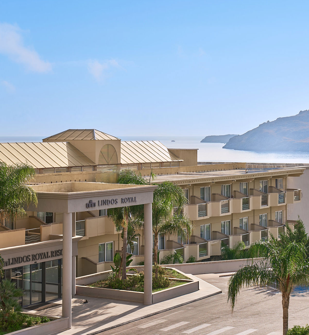 Lindos Royal Resort is a 5-star resort offering all-inclusive service on the petite beautiful bay of Vlycha, in Lindos, Rhodes; the hotel was designed aiming to become a leading holiday destination on the island of Rhodes, offering first class accommodation and services to its guests and an unforgettable summer holiday.